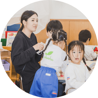 - 優しい先生ばかりで、とても働きやすい職場です。大人が一緒に楽しんで保育することが、子どもたちが毎日楽しく過ごせることにつながってくるので、一緒に保育を楽しんでいただける仲間をお待ちしています!